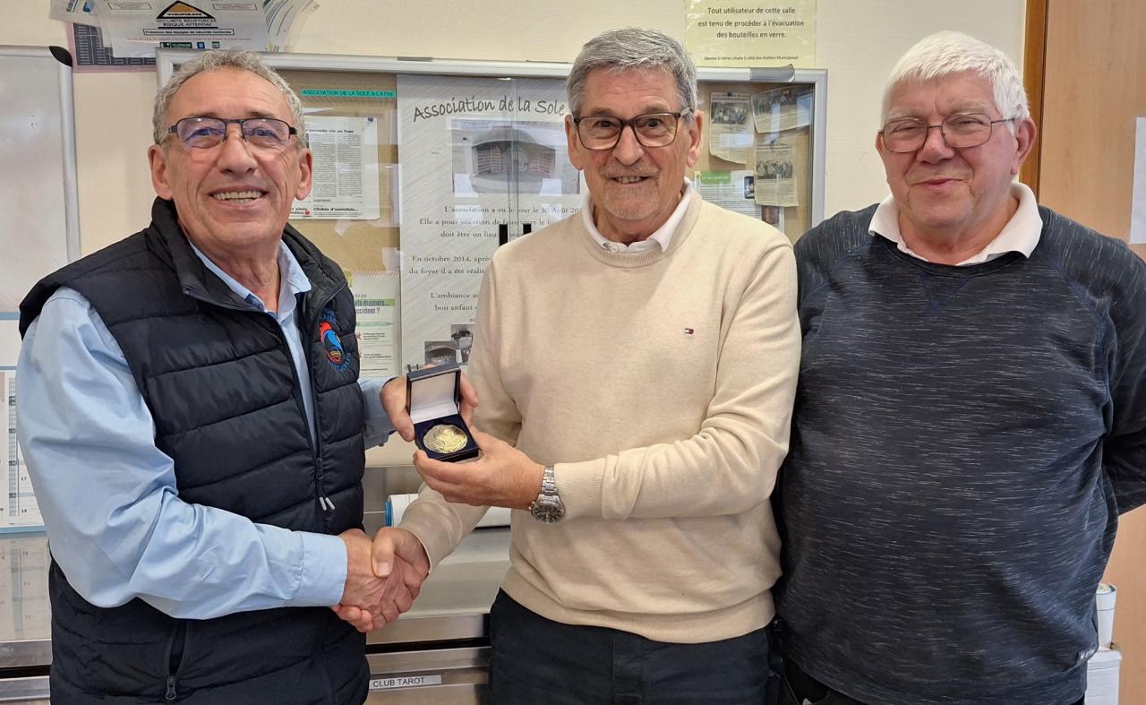 En fin de réunion le Président Daubard remettait, à la demande de la ligue AURA, la médaille d’Or de la fédération à Yves Grobet pour ses nombreuses années de bénévolat au service des boules.